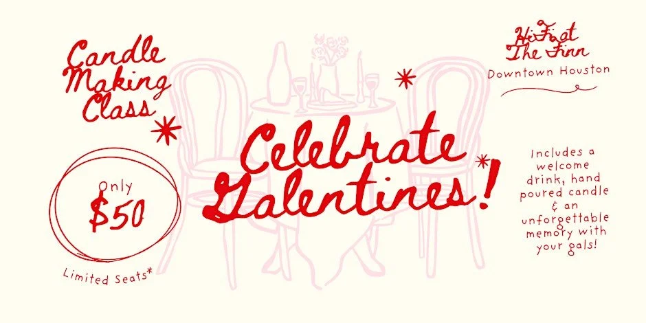 Celebrate the galentines with a fun and memorable Candle Making Class! Step into a groovy atmosphere where you’ll craft your own custom-scented candle inspired by the scents of love, togetherness and funk!
